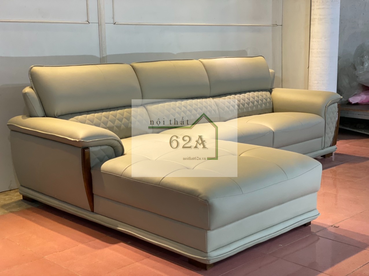 Sản phẩm sofa gỗ góc L hoặc Đối bọc da Cleo cao cấp