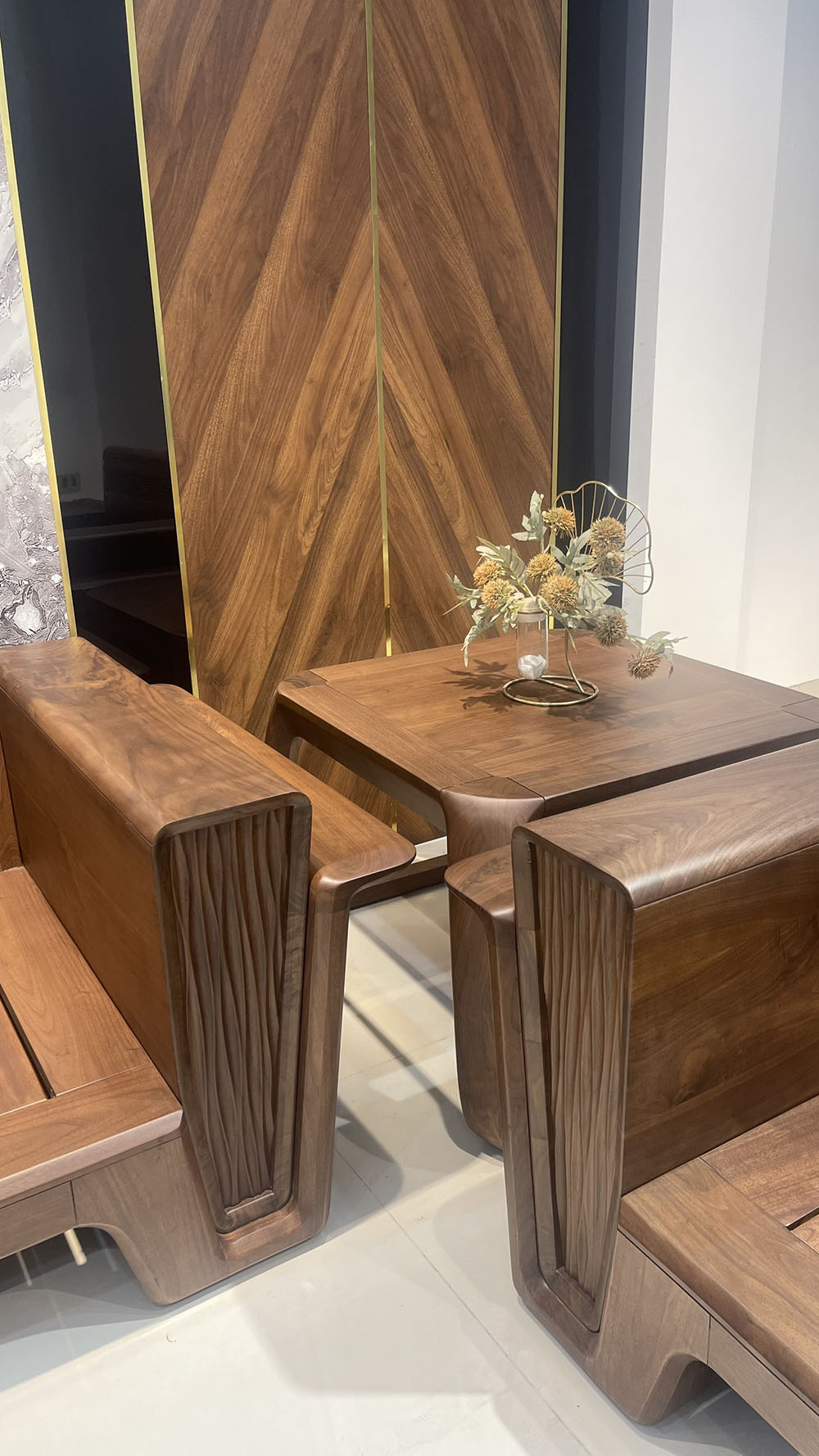 Sofa gỗ phòng khách cánh tiên,gỗ óc chó nhập khẩu nguyên kiện
