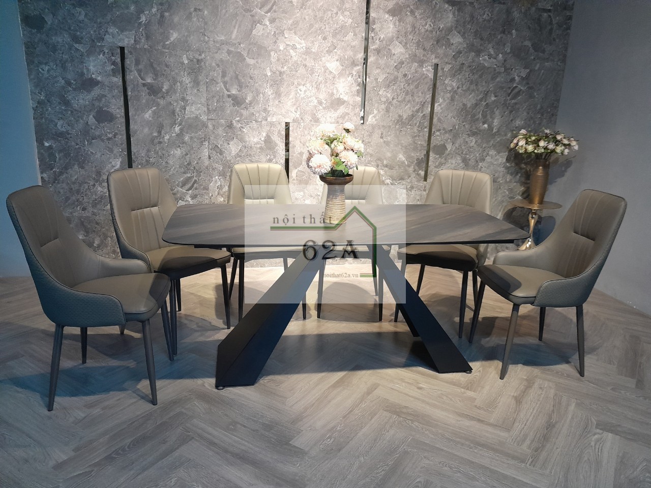 BA-NK 03 Gồm 1 bàn 160x80cm và 6 ghế 001 PRIORI CAM/BE/GHI