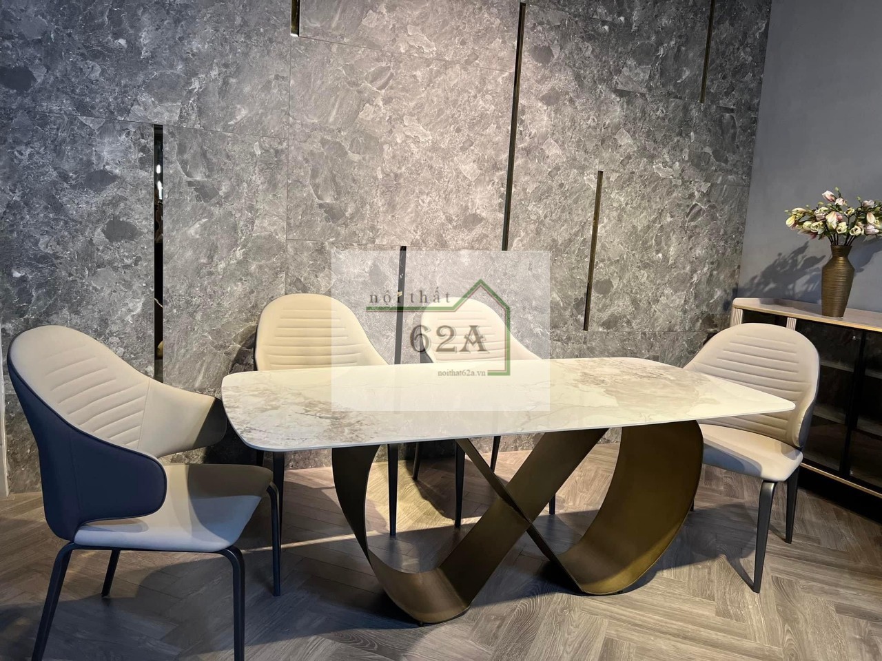 BA-NK12 Bộ gồm 1 bàn 160x80 4 ghế VĐG-008 HUGE WHITE