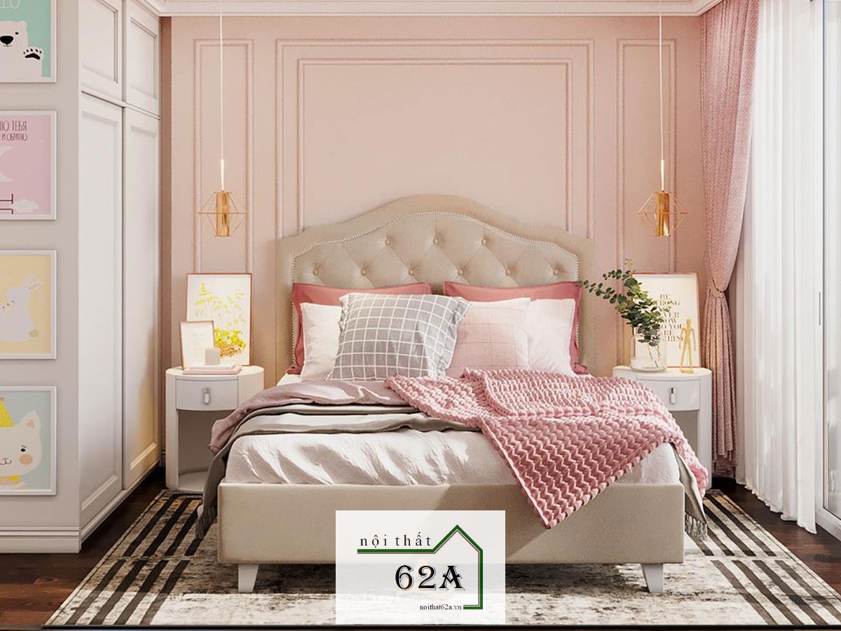 Phòng ngủ dành cho con trẻ sử dụng tông màu pastel ngọt ngào và dễ chịu. Không gian